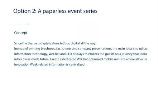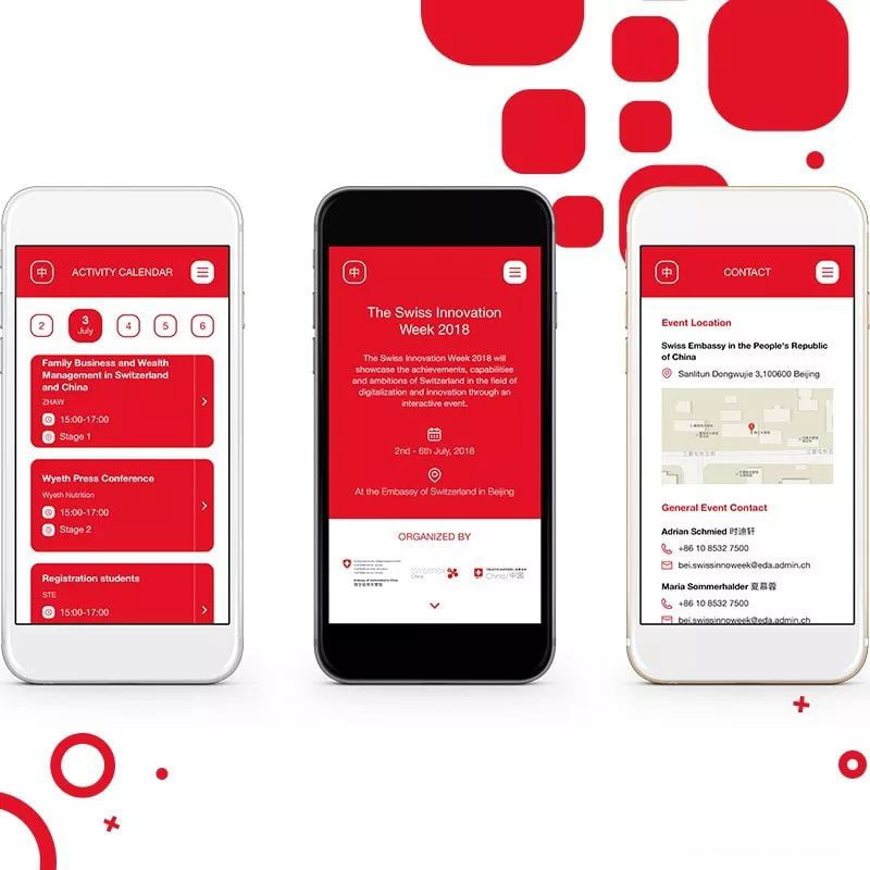 当瑞士驻华大使馆要求我们为2018年瑞士创新周提出视觉识别和图形设计方案时,我们决定尝试一些不同于传统纸质邀请函和画布背景的设计。