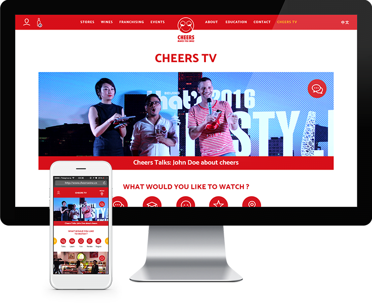 解决方案: 我们都能认出 CHEERS 品牌的独特红白色调,但我们的设计师的目标不仅仅是保持品牌的识别度。我们在这里创建的是一个环境!通过精心挑选的图标、充满微笑的摄影照片,当然还有恰到好处的红色和白色,我们再现了每次进入 CHEERS 商店时迎接您的专业 yet 放松、友好的氛围。