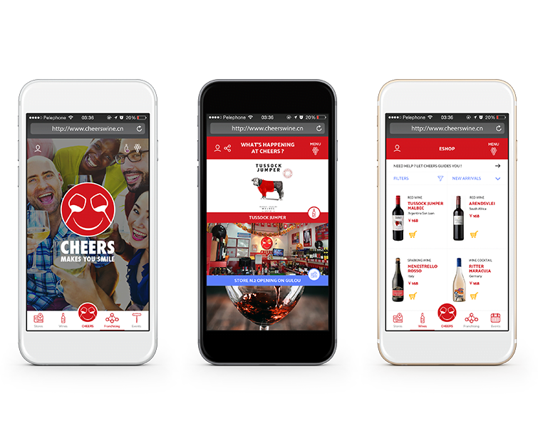 解决方案: 没有支付宝和微信支付的整合,这个中国制造的电商网站就不完整了,但我们还添加了一些独特的功能让您会心一笑。当然,它是双语的,但您知道吗?如果您在到达时共享位置,您将自动获得最新的活动信息、路线指引、课程报名以及在离您最近的商店内的现货订单功能。如果我们真的要深入技术层面,我们会告诉您,CHEERS 员工也在微笑。通过 CHEERS ERP 系统整合,现有客户可以用手机号登录,实现数据与所有 CHEERS 门店的直接同步。