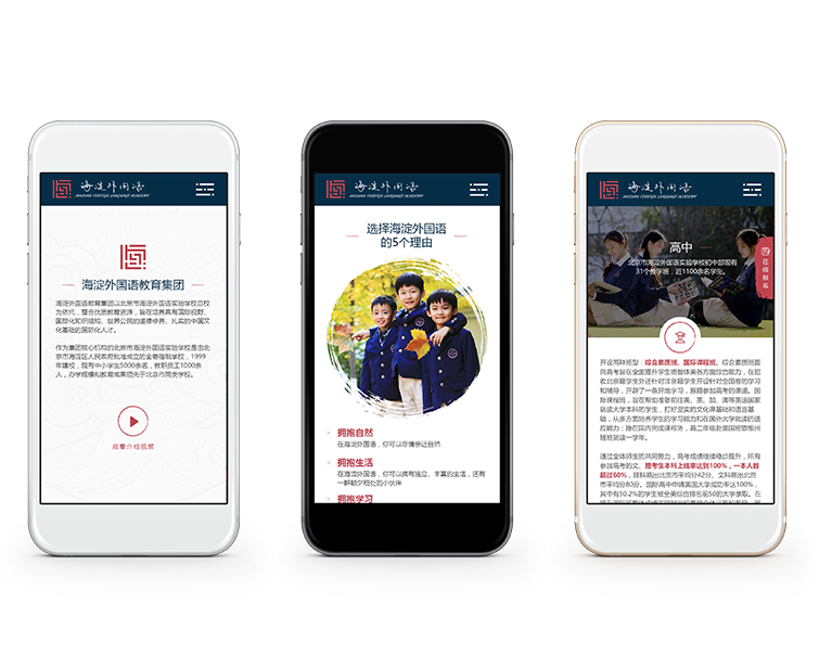 如何让一个体量如此庞大的集团在线上有一个正确、全面且美观的展现,让所有目标家长们能清楚且快捷的了解到具体的内容,是海淀外国语教育集团最初找到Flow的主要诉求。而一个全新的定制开发自适应网站,需要在九月新学期上线的时间要求对Flow来说也是一次新的挑战,因为当时距开学已不足三个月的时间。