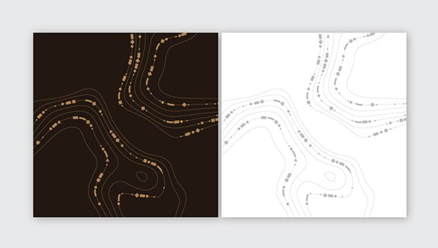 我们设计了一个灵感来源于景观设计项目地形的图案。图案通过融入小型标志元素以及木纹和水的流动性,与标志保持了连续性。