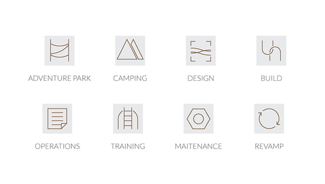 在呈现了多个设计概念后,SANFO CAMPS! 从俯瞰的冒险公园组合元素的形状和树木年轮中获得灵感,标志采用了圆形的统一设计,保持了设计和工程所需的简约优雅。