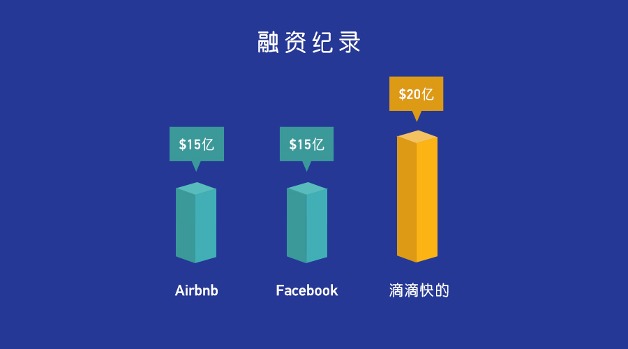 最近,优步 – 这家总部设在美国旧金山的公司,已宣布将中国定为该公司全球团队最专注的目标市场,并打算今年在中国投入逾10亿美元来加强中国市场的运营。同时,滴滴快的- 目前中国最大的打车应用公司已从他们的投资商手中获得20亿美元的融资,现在他们的现金储备已达35亿美元。他们最近一次的融资已成为国内移动互联网领域最大规模的非上市融资。至此,之前互联网行业排在融资首位的Airbnb和Facebook可以退居二位了,当时他们都分别获得了15亿美元的融资。