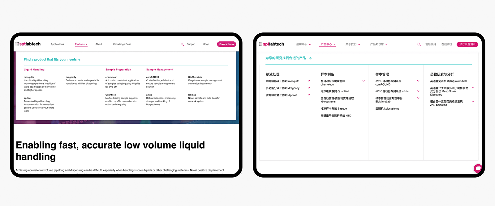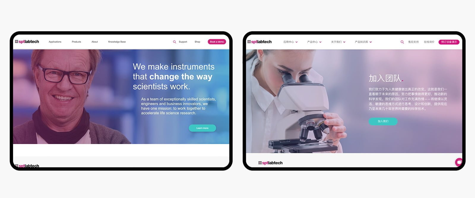 当SPT Labtech的线上主管John联系我们为他们全新的国际官网进行中国本地化建设时,我们立刻觉得这是一个让人兴奋的项目:分工明确的国际公司、专业的网站文案撰写者、专门负责对接的中国团队、雄心勃勃的客户和优秀的品牌视觉识别系统——项目要素一应俱全。历经数月,SPT Labtech全新的国际网站和中文网站成功上线。