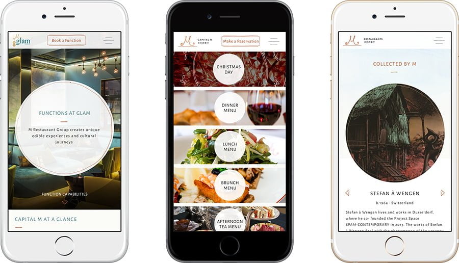 Capital M Restaurants 的数字平台在经过六个月的艰苦努力后正式上线,这段时间里我们团队的每一位成员都投入了工作。Capital M Restaurants 网站的新外观融合了响应式用户体验设计、图形和水彩素描,以及优雅的高清餐厅内部设计照片。