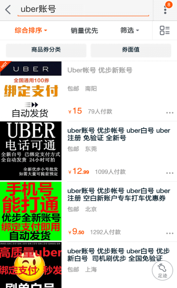 腾讯科技的此次调查发现,Uber刷单情况十分严重,仅淘宝一个渠道,就买卖了20万左右的Uber乘客账户。而淘宝却还不是账号买卖的最大的市场。保守估计,这样的假订单的数量可达100万,也有人认为实际远不止这个数字。尽管,Uber对刷单早已知晓但却没有想出很好的措施来予以治理。司机的刷单行为就是在烧投资者的钱,并未向任何乘客提供任何实质性的服务。但,如果直接将假单完全处理掉,又会严重影响Uber在华营销数据。毕竟,该数据对于能否说服投资商投入更多的资金,是个重要的衡量指标。