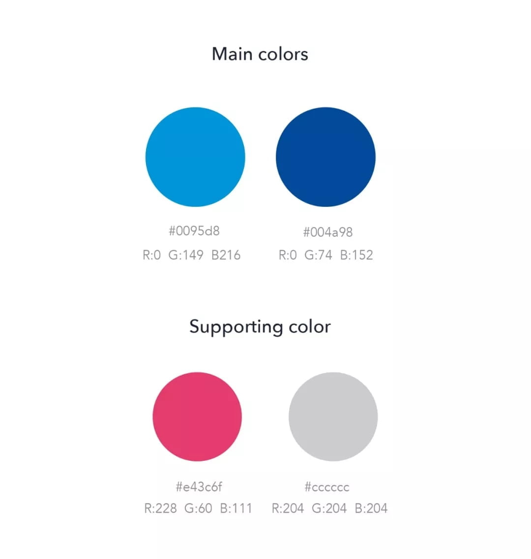 主色调的类似蓝色传达了专业性和可靠性,同时融入了自然元素,如蓝天、水和山脉。由于蓝色是冷色调,我们在四分色调色方案中找到了一个行动色,带来了温暖并创造了令人愉悦的平衡。
