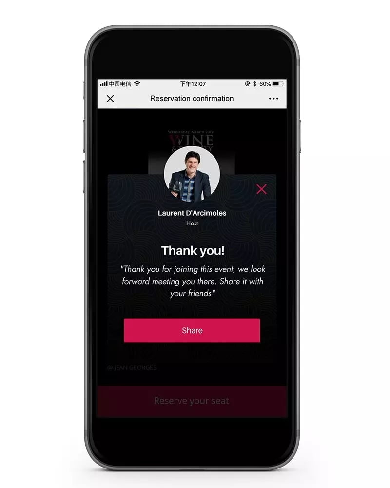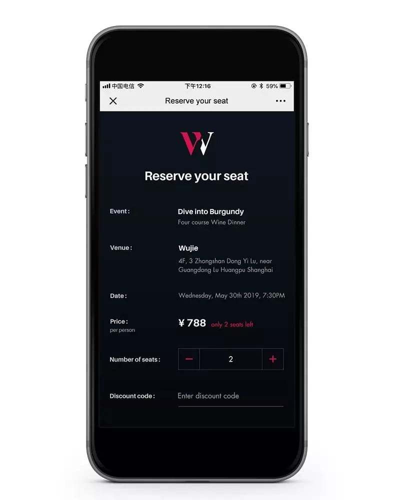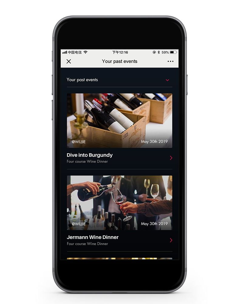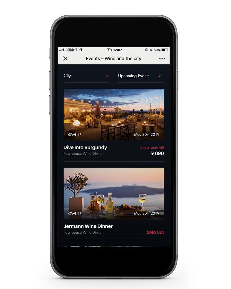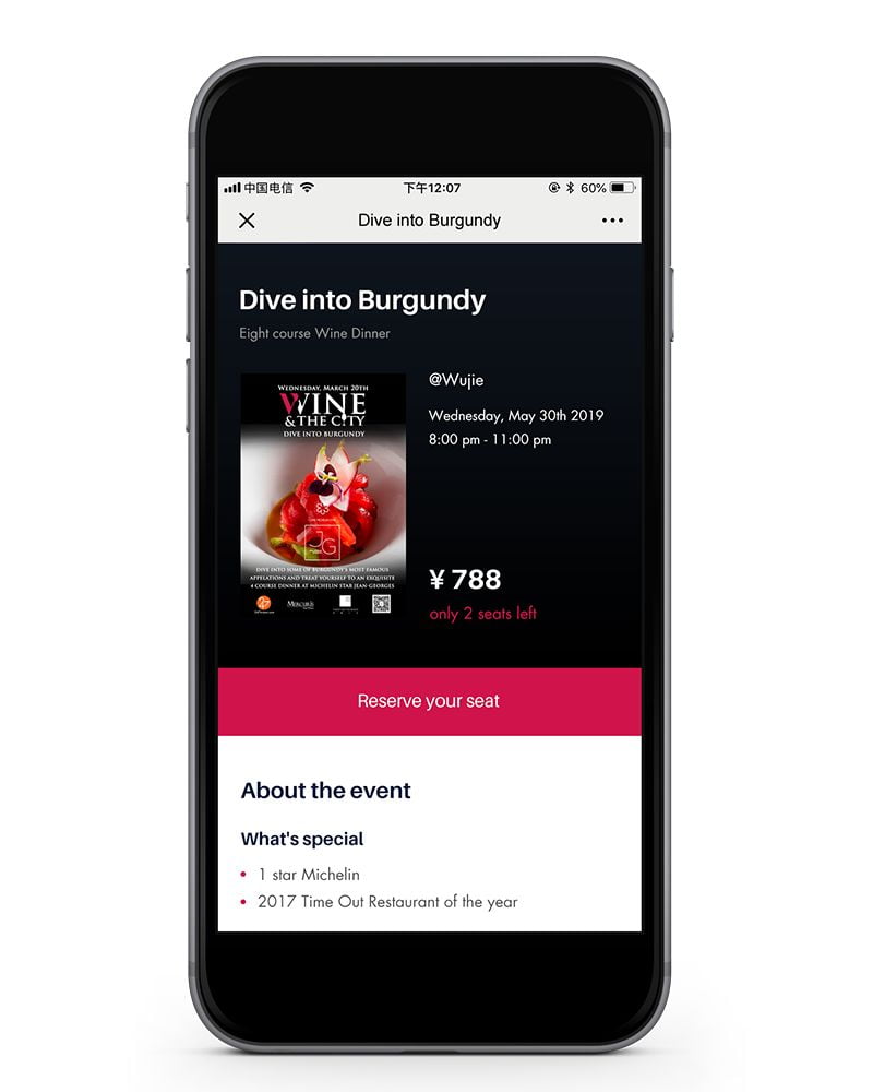 由于Wine & The City的受众100%都在使用微信,因此创建一个微信小程序,让会员能够注册账户、报名活动、兑换优惠券、支付并管理预订,成为了自然而然的选择。