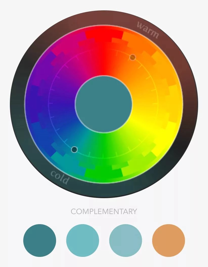互补色是色轮上彼此直接相对的颜色。互补色对比鲜明,相互突出。