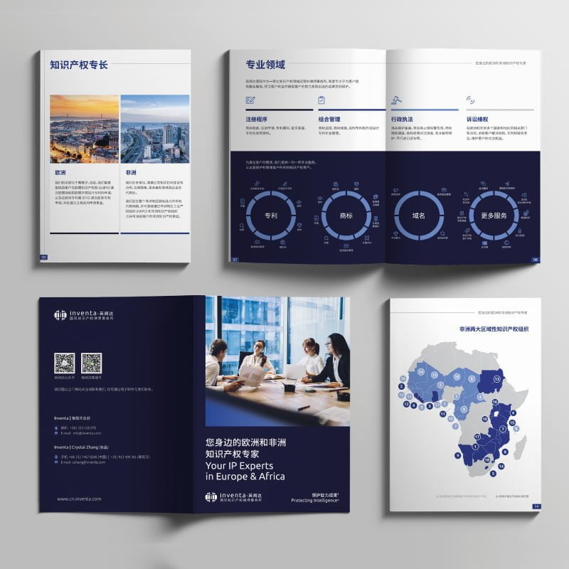 Inventa 英闻达国际知识产权律师事务所致力于为全球客户提供专业和优质的国际知识产权服务,业务范围涵盖商标、专利、外观专利设计、版权和域名等知识产权领域。近期,我们和Inventa葡萄牙的全球市场团队合作,进行品牌视觉识别系统的本地化设计,并根据他们在中国的市场推广和销售的需求设计了展位的印刷物料和宣传手册。整个项目过程非常愉快,我们期待未来与Inventa的再次合作。
